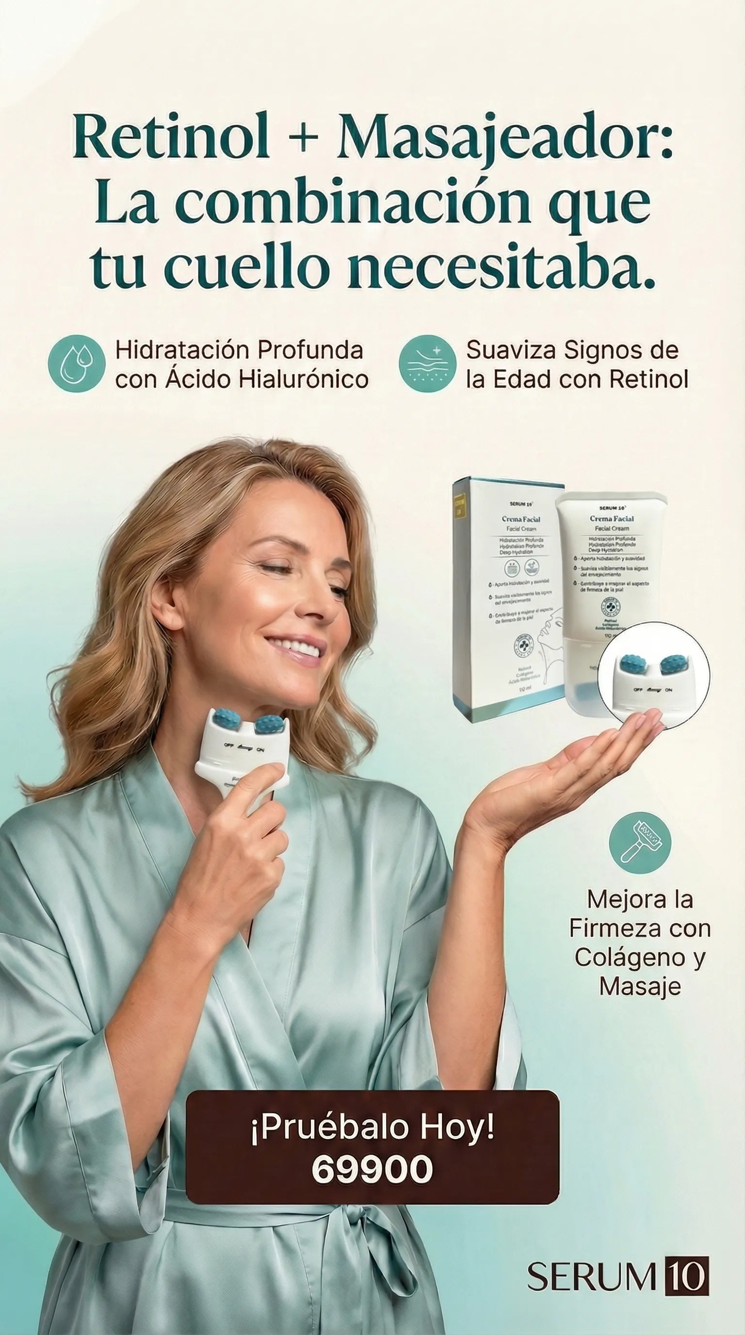 Me encantó porque se aplica fácil y el masajeador ayuda muchísimo. La piel del cuello se ve más pareja.Laura M.